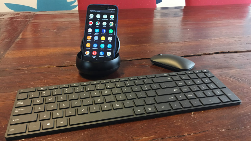 De Samsung DeX is een virtuele desktop voor de Samsung Galaxy S8, waar een beeldscherm, muis en toetsenbord op aangesloten kan worden. Via Android heb je toegang tot apps waarmee je surft op het internet, documenten bewerkt, video’s bekijkt, op berichten reageert en meer. De Android-interface is geoptimaliseerd voor gebruik met toetsenbord en muis en bevat verschillende in grootte aanpasbare schermen, contextuele menu’s en een desktopversie van de webbrowser. Alsof het een echte desktop-pc zou zijn.
